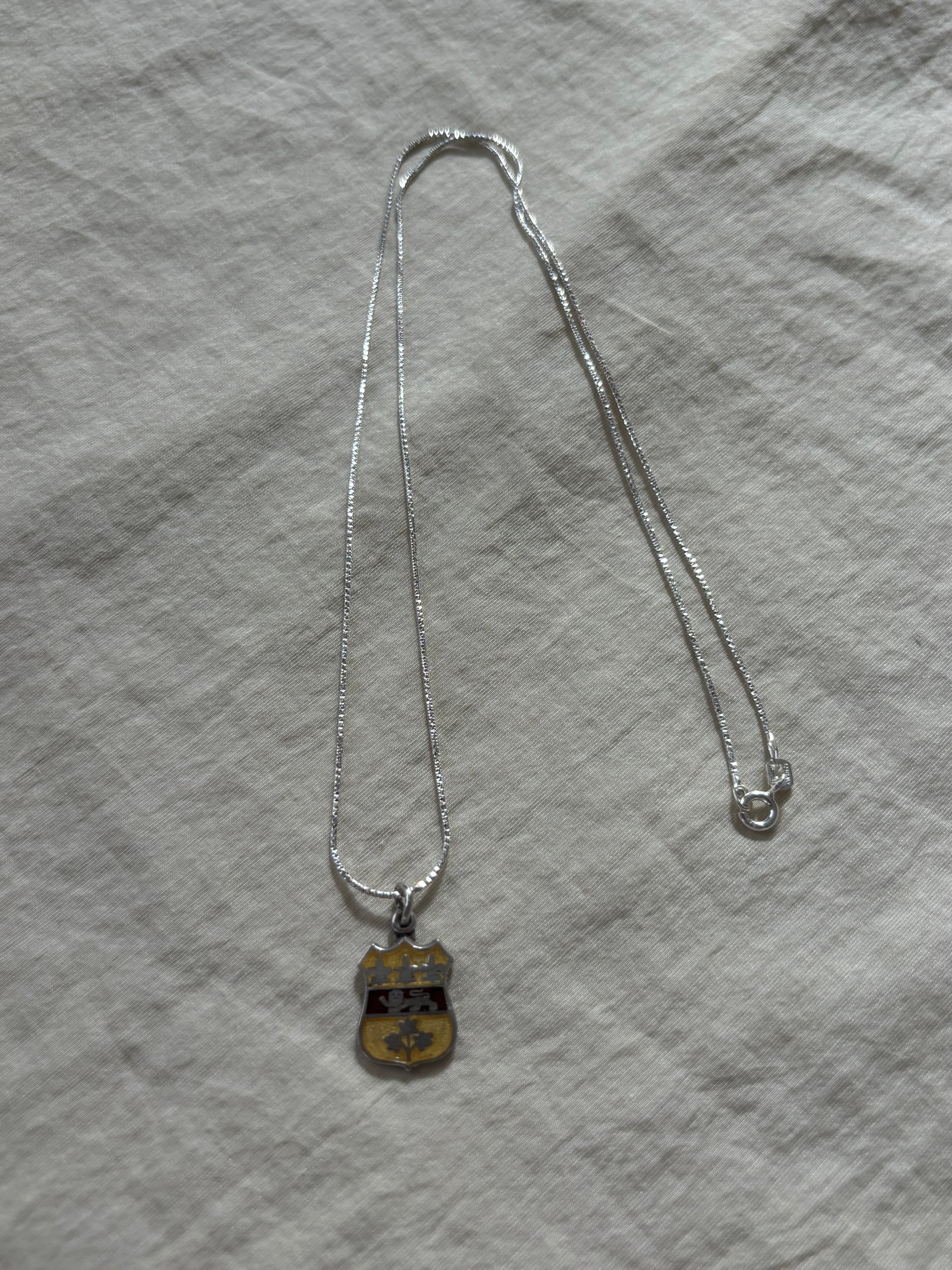 イエローとシルバーのコントラストが華やかで、高級感がある印象。紋章の形がしっかりしていて、クラシックなヨーロッパの雰囲気を楽しめるアイテムです。他のシンプルなアクセサリーと合わせても、胸元にアクセントを加えられる。