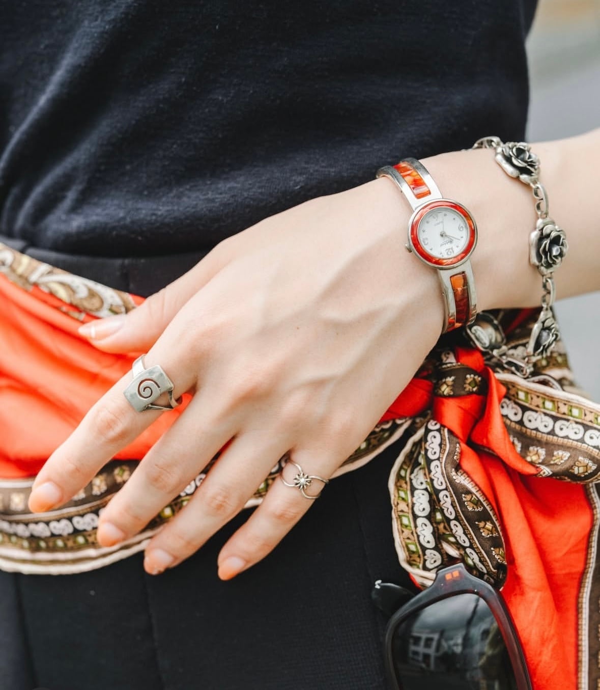渦巻きのモチーフ珍しいユニークリング。リングのプレートが左右で違うデザインになっているのがポイント。